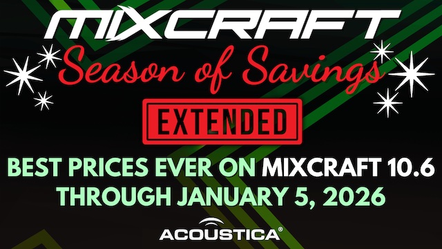 Black Friday and Cyber Monday may be behind us, but you can still get incredible savings now during our Mixcraft Season of Savings Sale, which runs now through January 5th, 2026!